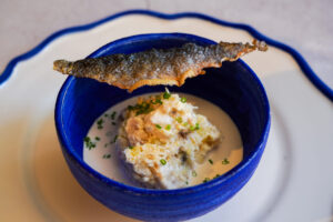 Un primer plato o aperitivo de lujo. Un clásico exquisito y enriquecido con la lubina. Ingredientes (4 personas): 250g de lubina 3 huevos duros