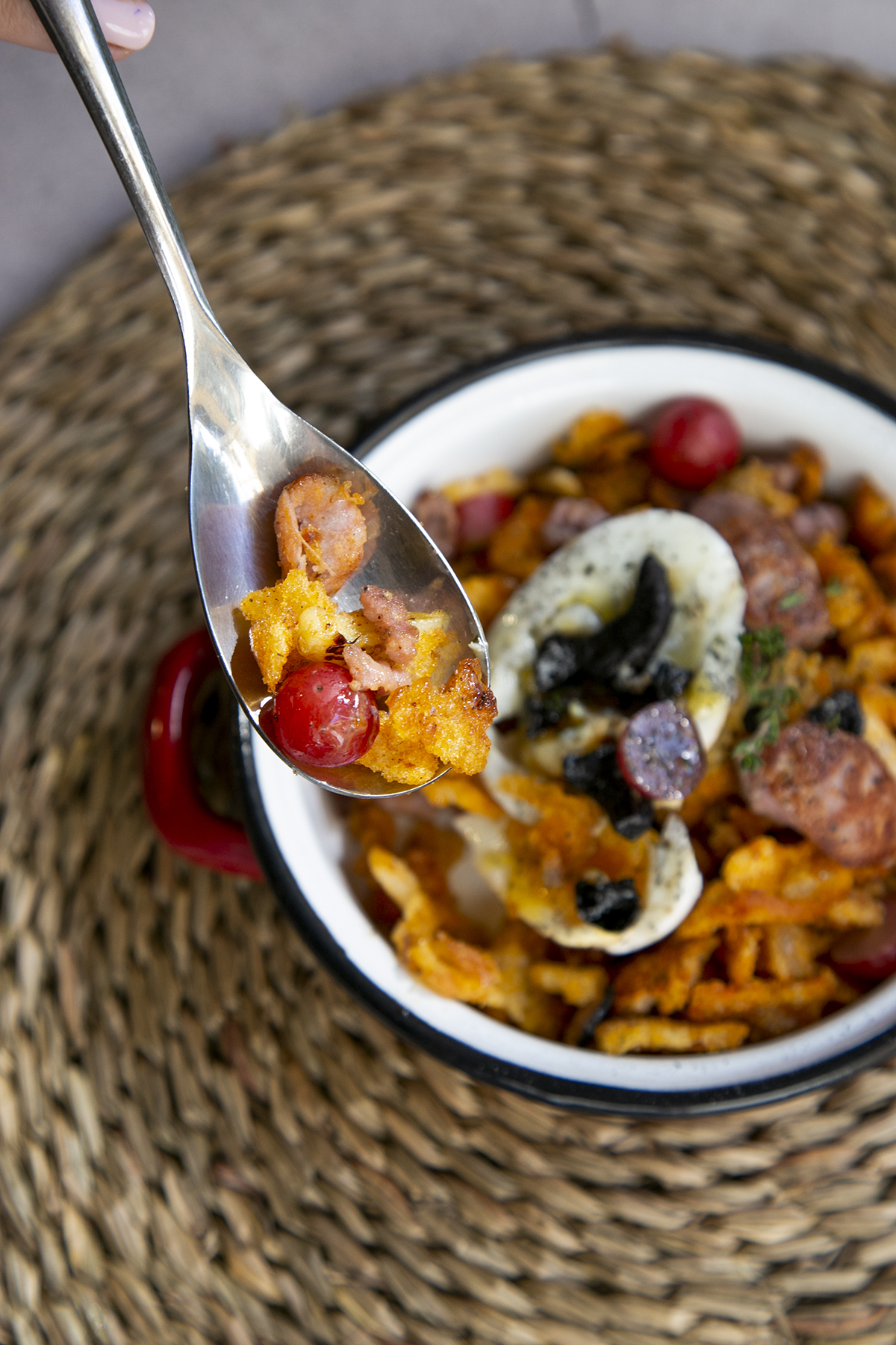 8. Acompañar el plato con huevo frito y si se quiere unas uvas para desengrasar.