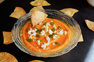 Una crema otoñal perfecta para un aperitivo con un toque de Halloween. Una receta muy vistosa, de digestión fácil e ideal para introducir verdura entre