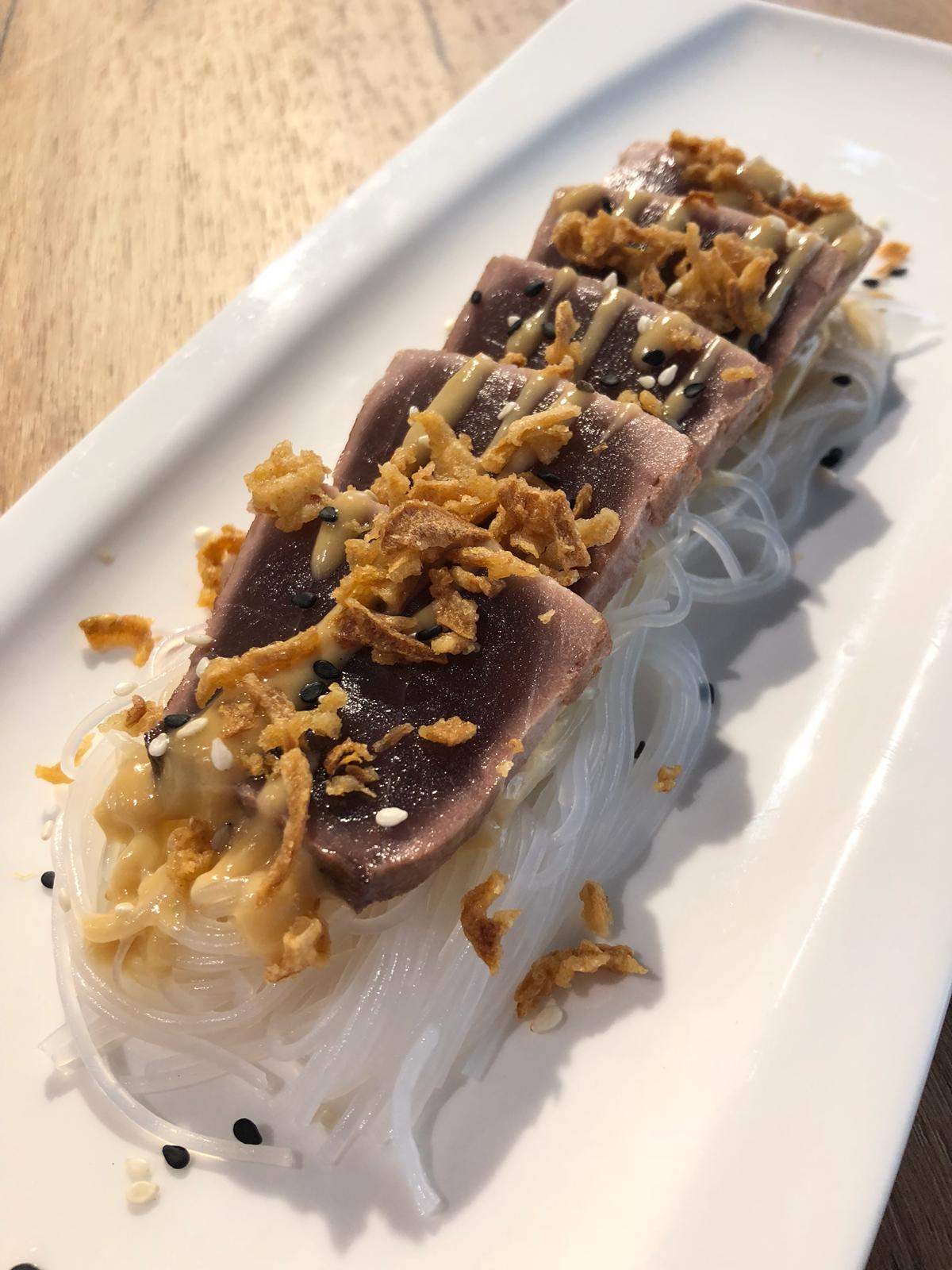 • Magret de pato, boniato, verduritas a la soja y salsa gastrique