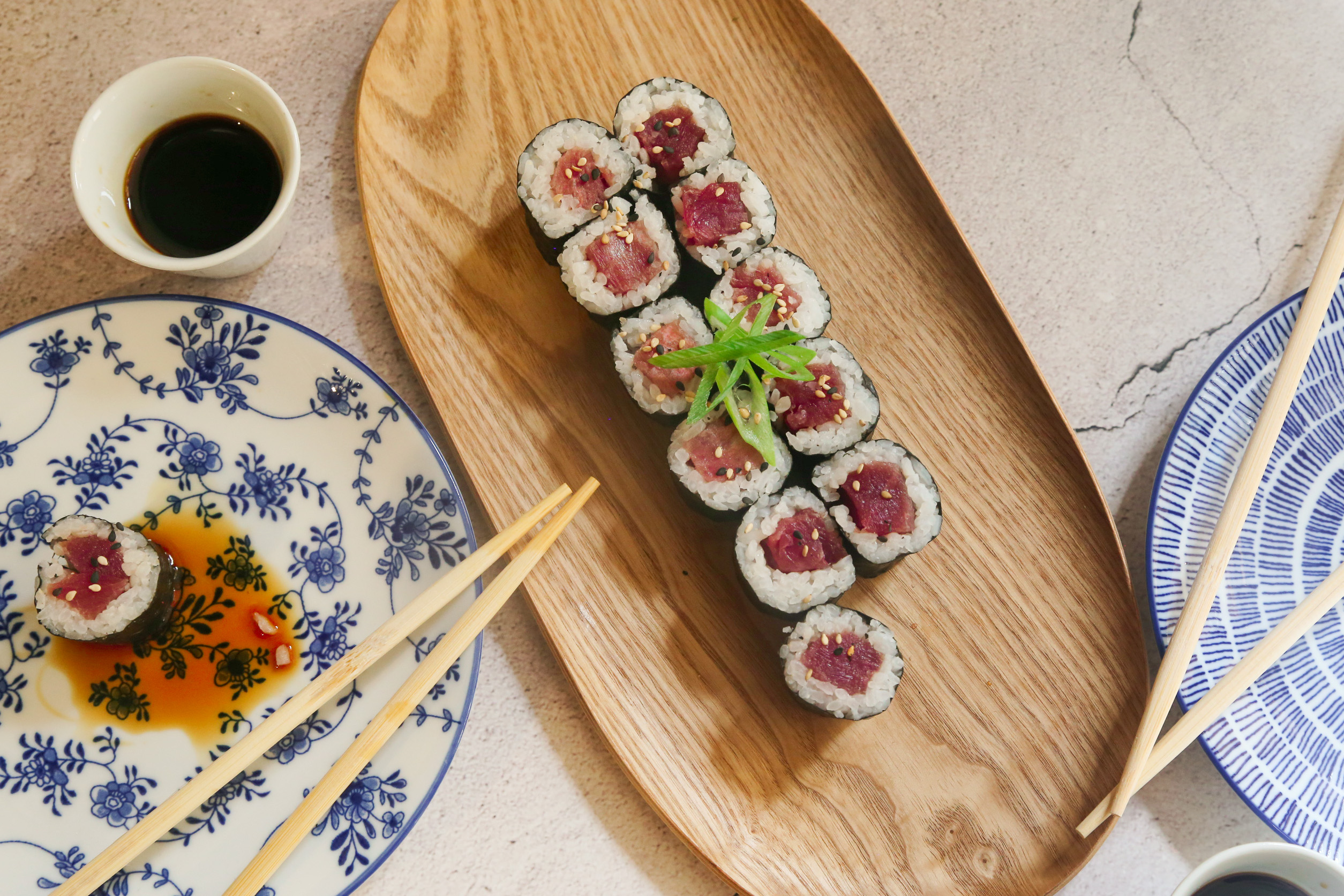 - Maki de atún, pepino y queso crema